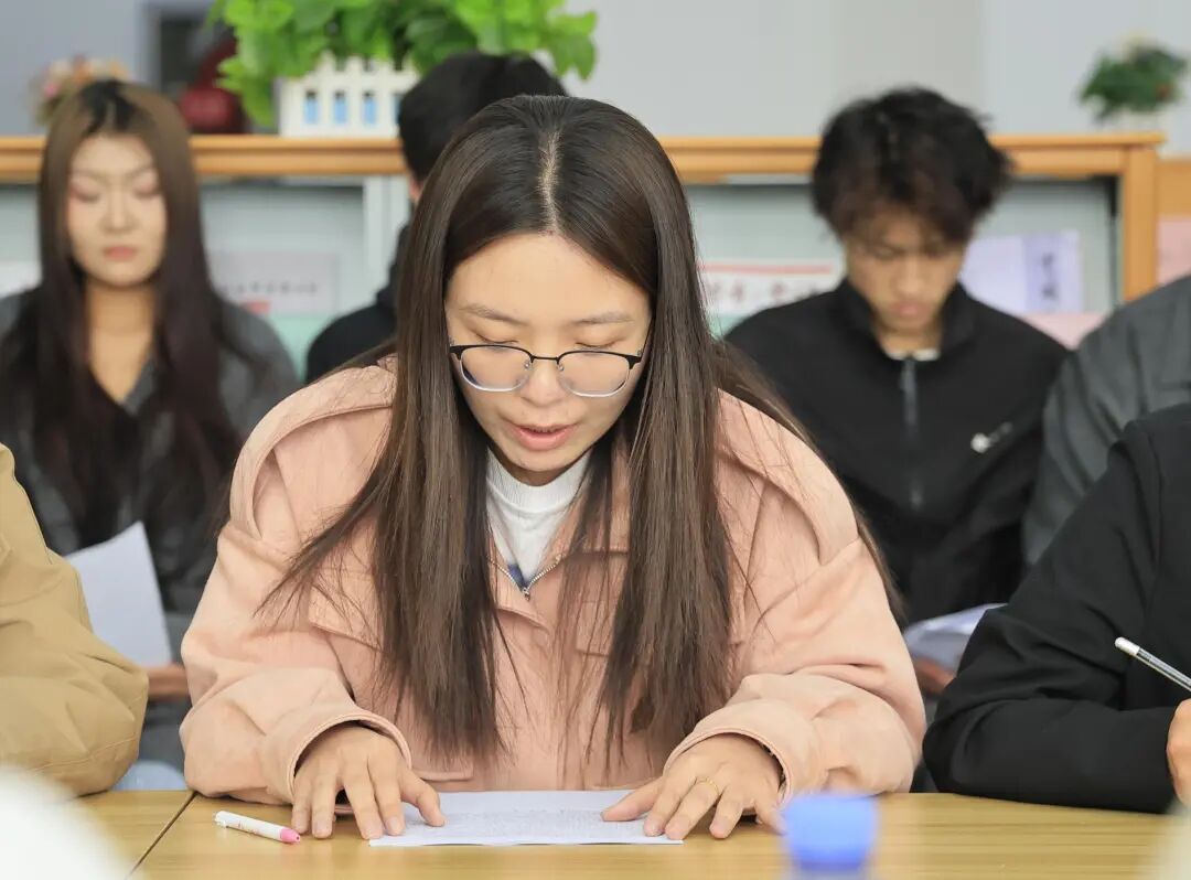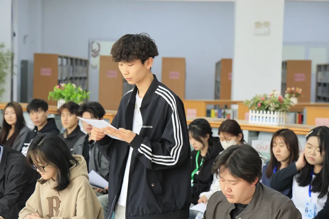 学生代表白天杨结合自身成长,分享从红色经典中汲取的信仰力量。他表示,研读经典让自己深刻感悟马克思主义真理力量,更加坚定听党话、跟党走的理想信念。今后将以革命先辈为榜样,把理论学习成果转化为勤学笃行的强大动力,锤炼品格、增长才干、主动实践、勇于担当,以青春朝气与实干姿态践行新时代青年使命。       学生代表朱丹丹在分享中谈到,红色经典让自己接受了深刻的思想洗礼与精神熏陶,深刻体会到革命先辈不畏艰难、久久为功的坚定意志。她表示,将以此次学习为契机,坚定理想信念、厚植家国情怀,脚踏实地、勤学善思、乐于奉献、勇毅进取,把学习收获转化为奋进新征程的实际行动,努力成长为可堪大用、能担重任的时代新人。
