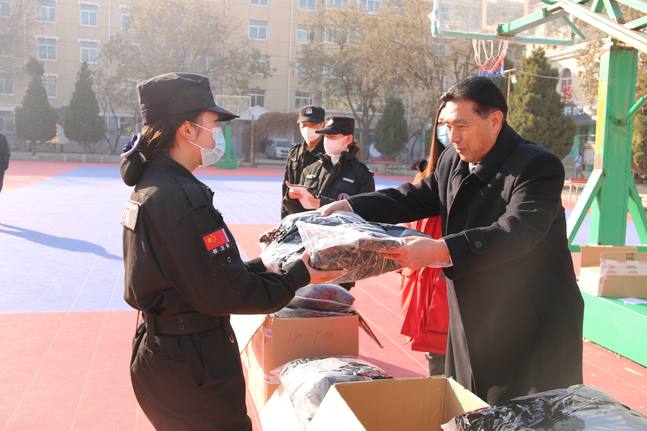 滴水成冰的日子,一分钟也不想在外面多待,但是在兰州科技职业学院里,有一群人却要在寒风中“一站到底”,他们就是值守在学院门口的志愿者们。11月27日上午,学院董事长孟虎将一件件棉衣送到了志愿者手里,为值守在学院各个角落的志愿者送去一份温暖。