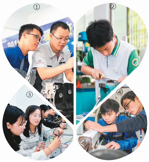 ①江苏常州交通技师学院工程车辆系教学现场。(2019年5月)胡扬辉摄 职业教育是国民教育体系和人力资源开发的重要组成部分。党的十八大以来,党中央、国务院高度重视职业教育,加大力度推动职业教育的改革发展,不断增强职业教育对经济社会发展需求的适应性。 过去10年,我国职业教育从“层次”走向“类型”、从政府主体走向多元参与、从规模扩张走向内涵发展,为促进经济社会发展和提高国家竞争力提供了优质人力资源支撑,大有可为的职业教育舞台越来越宽广。 已建成全世界规模最大的职业教育体系 10年间,职业教育主动服务经济社会发展,适应性更强。面向市场、服务产业是职业教育的基本功能,也是推动职业教育发展的基本策略。教育部两次调整专业目录,以产业、行业分类为主要依据,淘汰落后专业108种,升级和补充专业1007种,更新幅度超过70%。目前,全国职业学校共开设1300余个专业和12余万个专业点,基本覆盖了国民经济各领域,使人才培养结构调整与需求结构变迁更好地对接起来,有力支撑了我国成为全世界唯一拥有全部工业门类的国家。在现代制造业、战略性新兴产业和现代服务业等领域,一线新增从业人员70%以上来自职业院校毕业生。 数据显示,目前,我国已建成全世界规模最大的职业教育体系,2021年高职学校招生557万人,相当于10年前的1.8倍;中职学校(不含技工学校)招生489万人,招生规模企稳回升。中高职学校每年培养1000万左右的高素质技术技能人才,为经济社会发展提供了源源不断的技术技能人才。与此同时,国家先后出台《职业技能提升行动方案(2019—2021年)》《职业院校全面开展职业培训 促进就业创业行动计划》,启动“1+X”证书制度试点。全国1万余所职业学校每年开展各类培训上亿人次,在开展新型职业农民培训服务的高职院校中,141所学校年培训量超过5000人/日,86所学校年培训量超过10000人/日。职业学校培养能力不断增强,学历教育与培训并举并重的职业教育办学格局基本形成。 校企合作不断深入推进,呈现多样化格局。全国组建了1500多个职业教育集团(联盟),涵盖了企业、学校、行业、科研机构在内的4.5万余家成员单位。世界500强企业中,有175家企业参与职业教育集团化办学。在全国培育了3000多家产教融合型企业、试点建设了21个产教融合型城市,构建起以城市为节点、行业为支点、企业为重点的产教融合新模式。在“土地+财政+税收”政策激励下,职业学校与企业共建实习实训基地2.49万个,年均增幅达8.6%,现代学徒制试点覆盖1000多个专业点,惠及10万余学生(学徒)。 职业教育与普通教育相互融通,也使学生成才路径更畅。“一方面,引导青少年树立技能报国之志,全国4500余所职业学校支持中小学开展劳动教育实践和职业启蒙教育,辐射中小学近11万所,参与人次超过1500万。另一方面,加快建立‘职教高考’制度,完善‘文化素质+职业技能’考试招生办法,为中职学生和普通高中学生提供更适合的多样化发展机会。”教育部职业教育与成人教育司司长陈子季如是说。 职教教师队伍整体素质稳步提升 2018年,中共中央、国务院印发《关于全面深化新时代教师队伍建设改革的意见》,对新时代教师队伍建设作出顶层设计;2019年,国务院印发《国家职业教育改革实施方案》,教育部等四部门印发《深化新时代职业教育“双师型”教师队伍建设改革实施方案》,对职教教师工作进行了全面部署。 今年,新修订的《职业教育法》正式施行,对职教教师队伍建设作出规定,为发展中国特色现代职业教育、建设高质量职教教师队伍夯实法治基础。可以说,职教教师队伍建设的各项制度在逐步健全,治理体系基本确立。 队伍结构不断优化。全国职业学校专任教师规模从2012年的111万人,增加到2021年的129万人,增幅为17%。从年龄结构看,中职学校50岁以下专任教师占比将近80%,高职院校此项占比83%,中青年正成为职教教师队伍骨干力量。从“双师型”教师在专业课教师中的占比看,均超过55%(中职56%、高职专科59%、高职本科59%),达到了占比过半的要求。从学历结构看,中职学校本科及以上学历专任教师占比94%;高职学校本科及以上学历专任教师占比99%,研究生及以上学历专任教师占比41%,长期以来职业学校专任教师学历不达标的问题得到有效解决。 启动实施国家职教教师素质提高计划。建立起了“国家示范引领、省级统筹实施、市县联动保障、校本特色研修”的四级培训体系,遴选确定一批国家级职教教师、校长培养培训基地。据教育部教师工作司司长任友群介绍,2012年以来,中央财政累计投入培训经费53亿元,带动省级财政投入43亿元,有效支撑了5年一周期的全员培训工作。 “2022年,启动实施‘职教国培’示范项目,着力打造一批能够发挥高端引领和示范带动作用的培训项目,为各地各校打造样板。 全国职教教师教学创新团队建设工作于2019年启动,分两批建设364个创新团队,示范带动建立省级创新团队500余个、校级团队1600余个。”任友群说。 校企双向流动也更加通畅。早在2012年,教育部等四部门便印发《职业学校兼职教师管理办法》,支持、鼓励和规范职业学校聘请具有实践经验的专业技术人员、高技能人才担任兼职教师。2016年,教育部等七部门印发《职业学校教师企业实践规定》,明确职业学校专业课教师每5年必须累计不少于6个