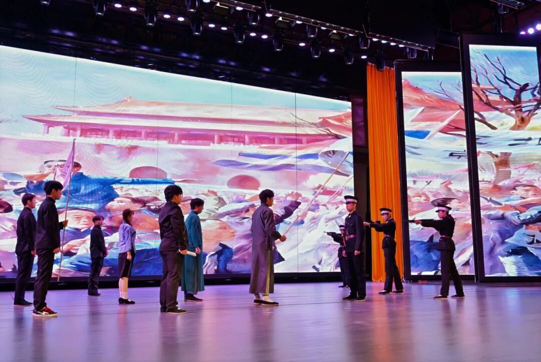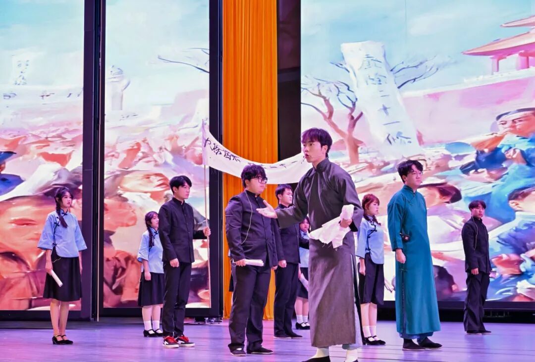 我院选送的情景剧《破晓》在第一篇章中震撼上演。该剧以“五四运动”为历史背景,生动再现了巴黎和会外交失败后,广大青年学生为外争主权、内惩国贼,毅然走上街头游行示威的爱国壮举。在常彦周、温沛老师的悉心指导下,张佳毓、罗家辉、吴鑫媛、陈怡森等同学以饱满的热情和精湛的演技,深刻刻画了青年学子在国家危难之际所展现出的觉醒与担当,剧情跌宕起伏,表演感人至深,赢得了现场观众的广泛共鸣和热烈掌声。6.jpg       此次参演不仅是我院思政育人成果的一次集中展示,更是推进大中小学思政课一体化建设实践教学的重要举措。近年来,学院党委始终坚持立德树人根本任务,不断深化思政课改革创新,将红色文化、革命精神融入教育教学全过程,通过情景剧、社会实践、理论宣讲等多种形式,增强思政课的吸引力与实效性,引导学生坚定理想信念,厚植家国情怀。